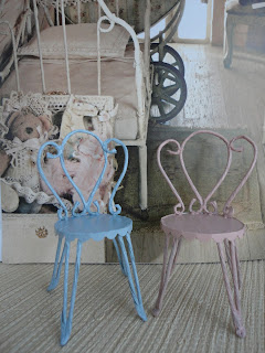 These chairs were really alot of fun to make. For me it was easier to make the chairs useing a floral wire, and the assembly of parts with a needle and thread than using the real wire. But from the wire the chair became more delicate.